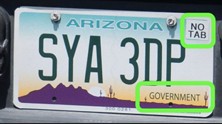 Some unmarked vehicles have the word “Government” in the bottom right corner rather than “Grand Canyon State” and do not use registration stickers. This is not common for ICE.