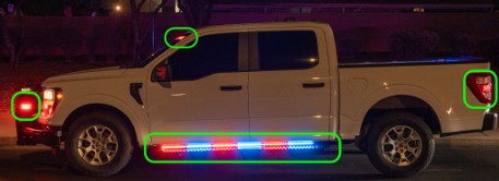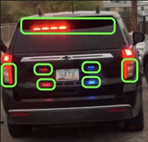 This is a feature not seen on civilian vehicles, so it can be very helpful for identifying unmarked police. However, unless these lights are on, they can be difficult to see. Here are a few places these lights can appear on vehicles.