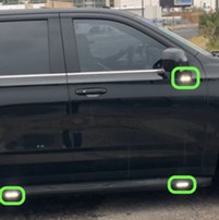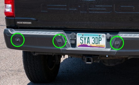 Many vehicles have small circles on their bumpers. These are parking sensors (also called “proximity sensors”), and most use ultrasonic sound waves to allow vehicles to “sense” obstacles when parking. But on some unmarked police vehicles, two or more of these sensors have been replaced by lights.